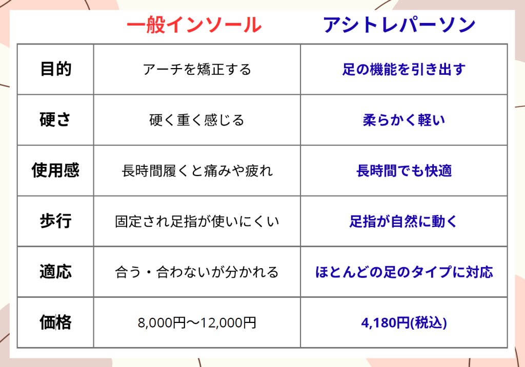 施術で痛みが取れた後が、最も重要です。 当院では、足アーチをサポートする機能性インソール「アシトレパーソン」を推奨しています。